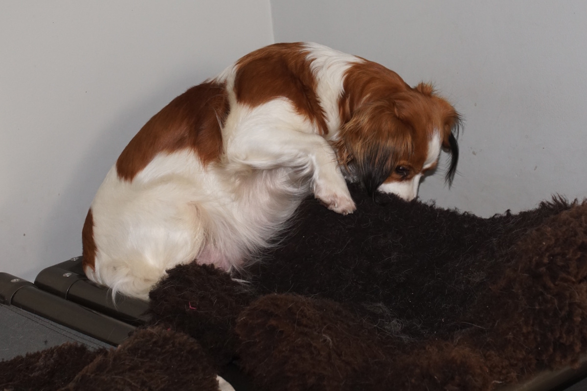 Maandagochtend 22 december begon Silke onrustig te worden en kregen we het idee dat de geboorte van de pups weleens in de loop van de dag en uiterlijk dinsdag zou kunnen plaatsvinden..