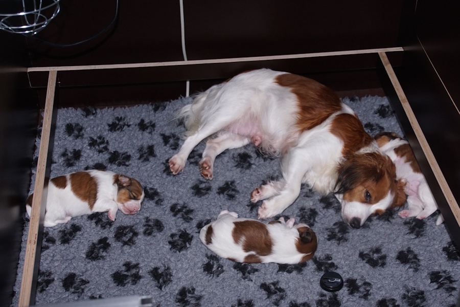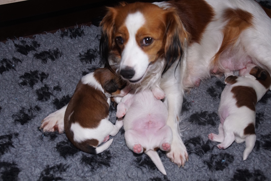 Zoals gewoonlijk heeft Silke ook nu geen bijzondere moeite en worden de overige pups ook zomaar geboren.